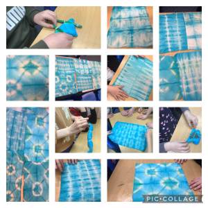 Years 3 & 4 have been inspired by the work of Vivien Prideaux. They have been experimenting with the shibori tie-dye technique.